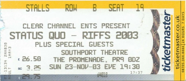 14.06.2004 - Status Quo played a private concert in the Netherlands at the wedding of dutch Quo fan Richard Molenaar and his wife Lucienne. About 250 guests attended at the Thalia Theatre in Ijmuiden, a small harbour place near Amsterdam. Quo was in the middle of their German tour and did this gig in between two german shows. They played a shorter set of 80' minutes.
