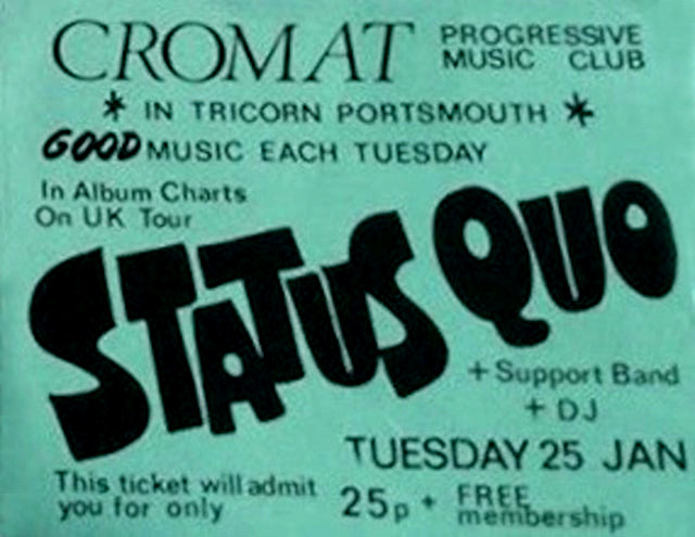 29.05.1972 - Lincoln Bardley Great Western Festival - one of Quo's most influential appearances. This was the festival that got Quo recognised as a high class live act and cemented their change to the 12-bar boogie rock that would prove to be their trademark for decades to come.