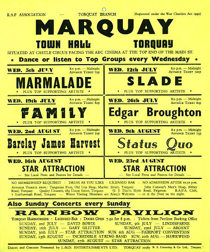 Tour Note: The gigs at Wolverhampton, UK 7.2.1972 and Weymouth, UK 13.2.1972 were cancelled, shows in July 1972 (22. Nottingham, 27. Bournemouth, 28. London and 29. Cromer) were postponed due to Alan Lancaster's illness.