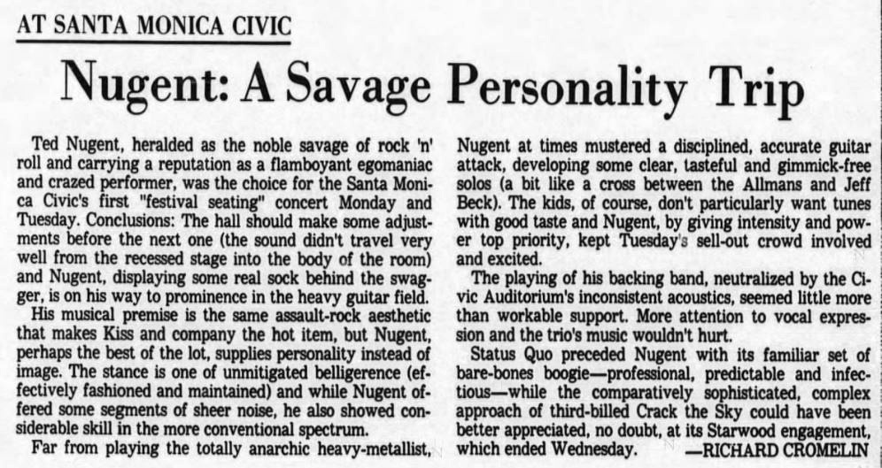 26/04/ USA, Santa Monica - Civic Auditorium (support to Ted Nugent, Crack the Sky)