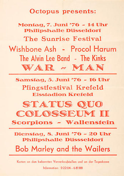 29.05.1976 - after the incident at the Vienna airport the band was able to continue their tour and played a thunderous show in Esslingen/Germany in front of a 7.000 crowd.