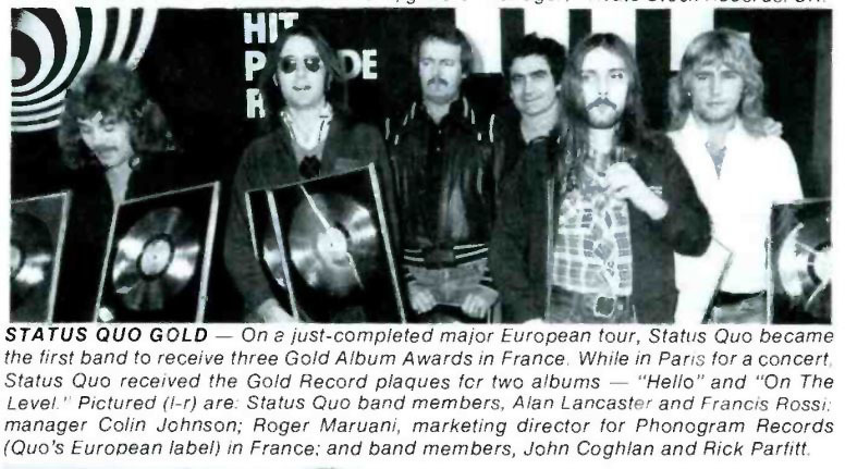 09.01.1977 - Quo won "Hard Rock act of the year" in the 1977 Daily Mirror Pop Club awards and played this special gig at Stafford's Bingley Hall.