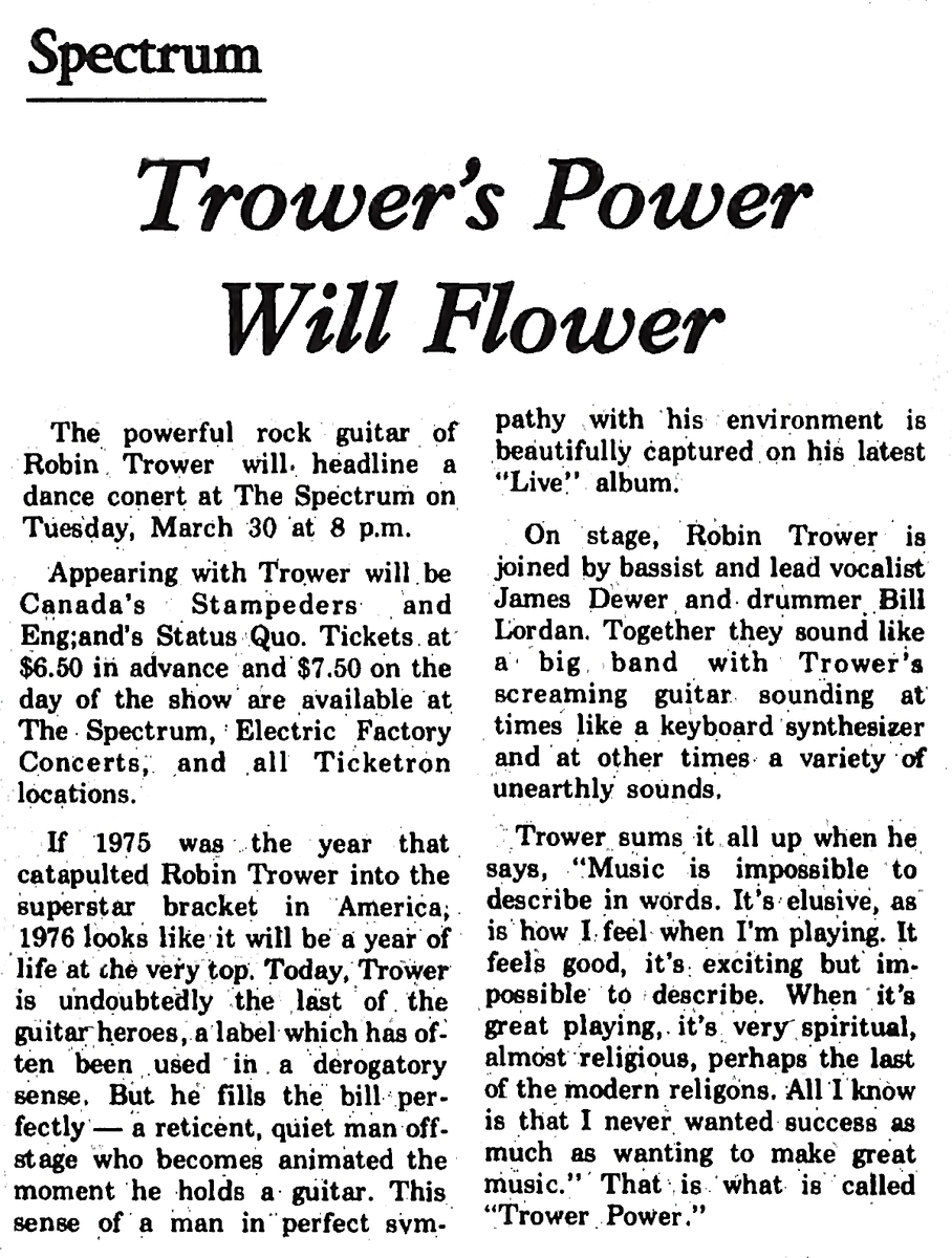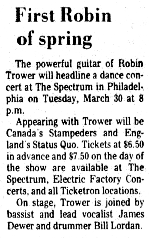 30/03/  USA, Philadelphia - The Spectrum (support to Robin Trower)