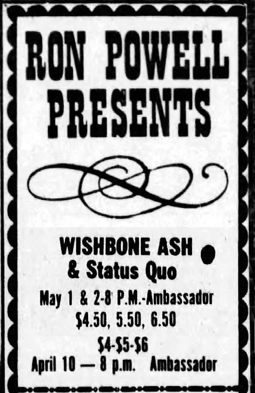01/05/  USA, St. Louis - Ambassador Theatre (support to Wishbone Ash)