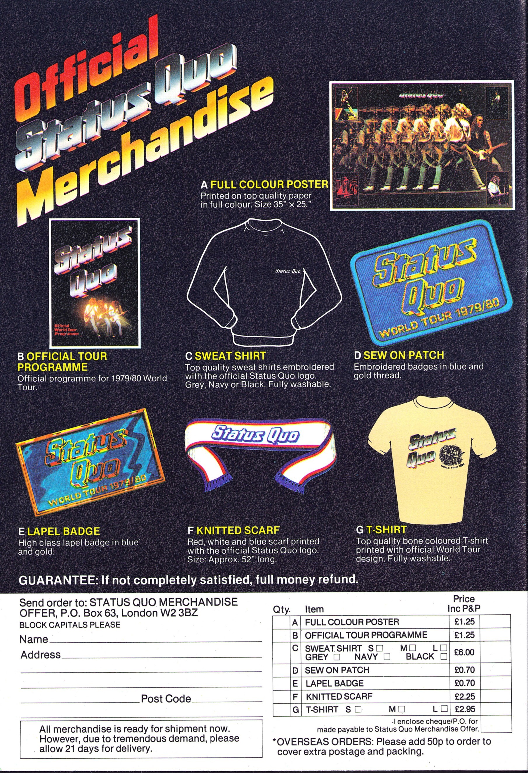 09.05.1979 - with the first show in London's Wembley Arena, the first UK-tour since November 1977 kicked-off. The ticket demand was that high, that additional shows were added and the whole tour included 33 concerts. All shows were sold-out. The tour was christened the "The Authorised Tour" - because Status Quo were promoting themselves on this tour and to promote the first Quo publication - the book "The Authorised Biography". Accident Prone? Tour crew member Ian Hill, one of the riggers, fell from the top whilst dismantling the rig at Wembley Arena.