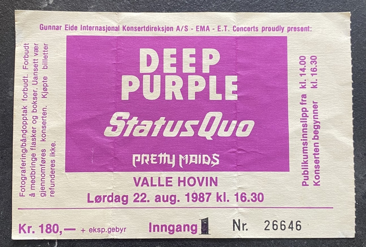 29.08.1987 -Status Quo headlined the Saturday line-up of the famous Reading Festival with Magnum, Bad News, Georgia Satellites, Lee Aaron, M.G.M., Terraplane, Glory Mammoth, Dumpy, Quire Boys and Blues' N Trouble.