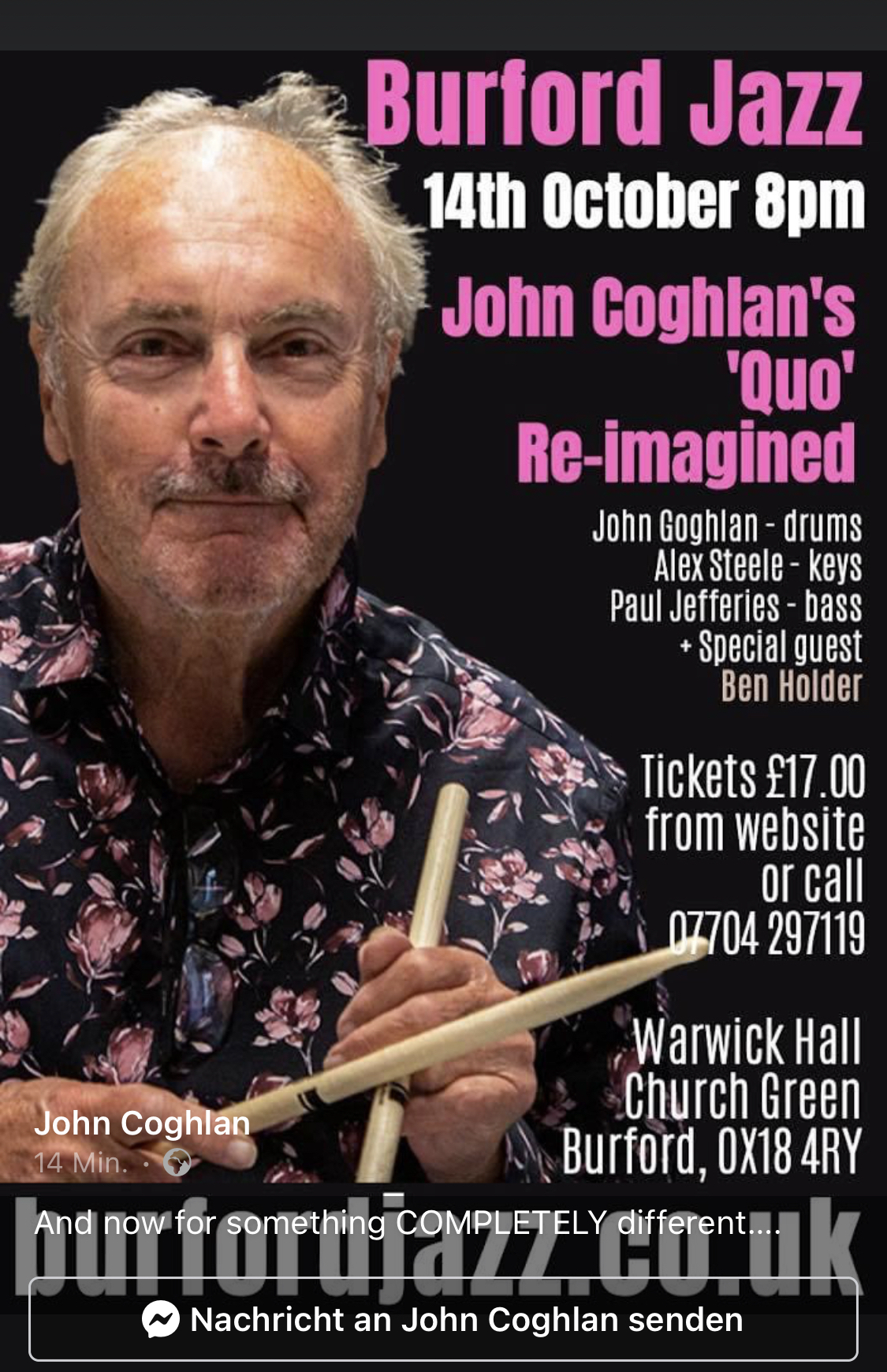 An intimate evening with legendary Status Quo drummer John Coghlan, who was a founding member of Quo and played in the band between 1962 and 1981, during the band's most successful and respected years, becoming one of the biggest bands of all time.