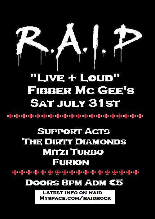 Raid was a hugely entertaining and animated four piece band hailing from South Dublin. They were a massive crowd pleaser, playing classic rock and blues from the likes of Status Quo, AC/DC, Thin Lizzy and Eric Clapton, blended with originals which give their own take on the genre. Dynamic frontman Richie Malone keeps the crowd entertained with his fluent in-between-song banter and crowd participation skills. Talented lead guitarist Jason Forbes, energetic drummer Alan Smyth and newest addition to the Raid camp, funk-rock bassist Brendan Smyth, also make sure that anyone who comes to see Raid are guaranteed to enjoy themselves and see a damn good show. Raid have clocked up both headline and support slots all over Ireland. They also played monthly slots in Walters Bar in Dun Laoghaire and Dublin’s the Mezz Bar as a house band.