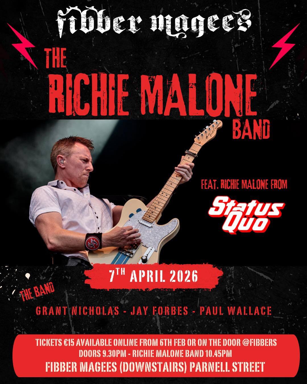 He currently formed his new band called The Richie Malone Band (with Jay Forbes, Paul Wallace and Grant Nicholas) and he will also continue to support the Status Quo tribute bands „The Quo Story" and "The Belgian Quo Band" live from time to time and appear as a special guest.