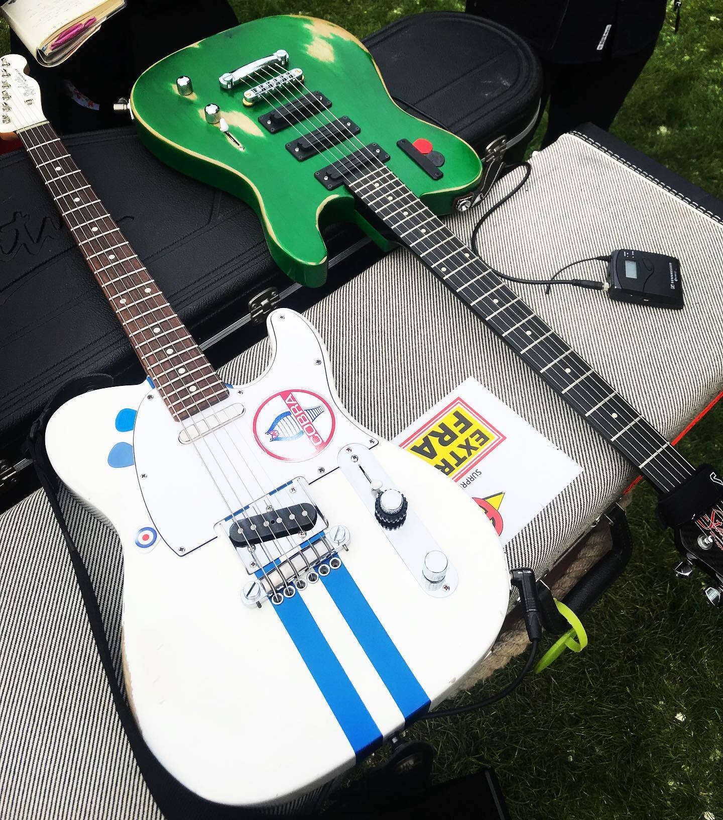 Richie uses three Telecasters and two Mayson acoustic guitars on tour with Status Quo. The first Telecaster is a custom built by Mike Smith designed by Malone himself with .13–56 strings called the "AC Cobra". The second is a replica of his predecessor Rick Parfitt's white Telecaster built by Mike Smith also with .13–56 strings, which was a birthday present from his father Karl, and which Malone has reportedly played at every gig since he was 21. The third is a Fender American Special with 11-.49 strings, used for performances of "Hold You Back". The Mayson acoustics are a DM5SCE and an MS7SCE, both with LR Baggs Anthem pickups.